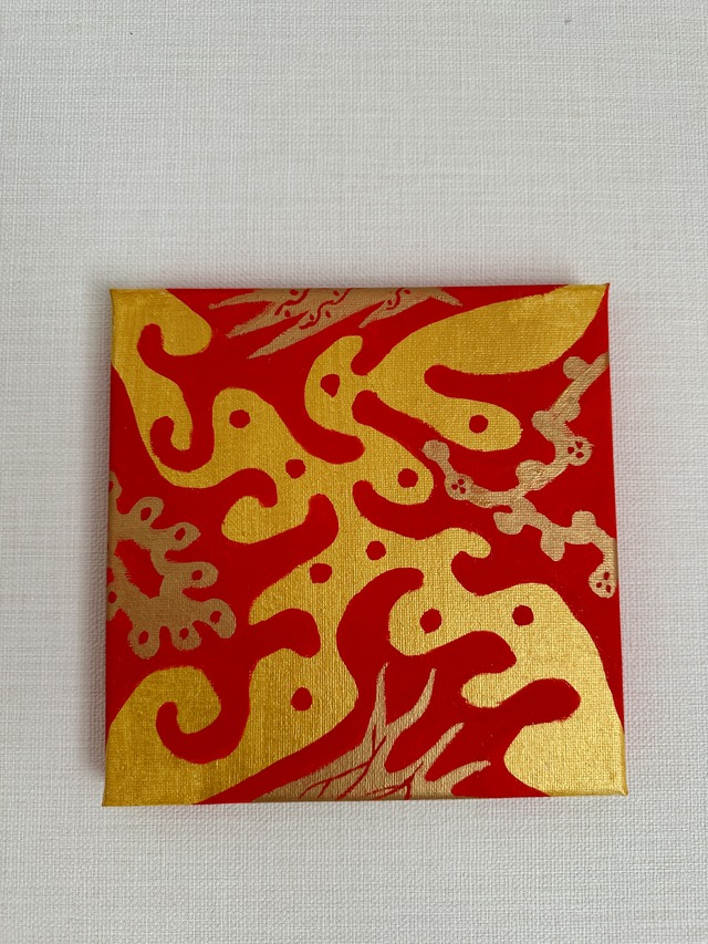 50×50×2.5cm 布プリント、水性インク、キャンバス 2022年 ※木製フレームを使用しているため、屋外での使用は避けてください。 ーーーーーーーーーーーーーー 『ぐにゃぐにゃ背骨』 背骨がぐにゃぐにゃになるくらいのイメージで、 身体を緩めて、 気持ちを楽に、 過ごしてみよう~! リラックス以上の解放感! ぐにゃぐにゃを習慣にしてみる。 そうしたらまた違う世界が開けるかも ぐにゃぐにゃ最高~ 今日も最高の一日になりますように♪
