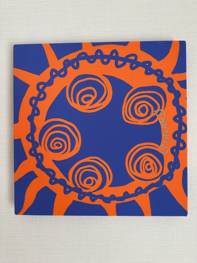 50×50×2.5cm 布プリント、水性インク、キャンバス 2022年 ※木製フレームを使用しているため、屋外での使用は避けてください。 ーーーーーーーーーーーーーー 『ひまわり』 ひまわりって、 複数の花の集合体って知ってた? それぞれが、それぞれの場所で花を咲かせて、 一つのひまわりをつくってるんやって。 地球上のあらゆる生物も そうなんかもね。