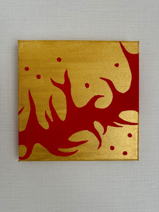 30×30×2.5cm 布プリント、水性インク、キャンバス 2023年 ※木製フレームを使用しているため、屋外での使用は避けてください。 ーーーーーーーーーーーーーー 『パッション』 自分の中の情熱の部分を無視しない方がいい。 なぜか。 いずれにせよ、暴れ出すからさ。 暴れ出す前にうまく使ってやること。 ここぞという時に出してあげること。 そしたら勝手に進む気がしてる。 これが本質なんかもしれん。